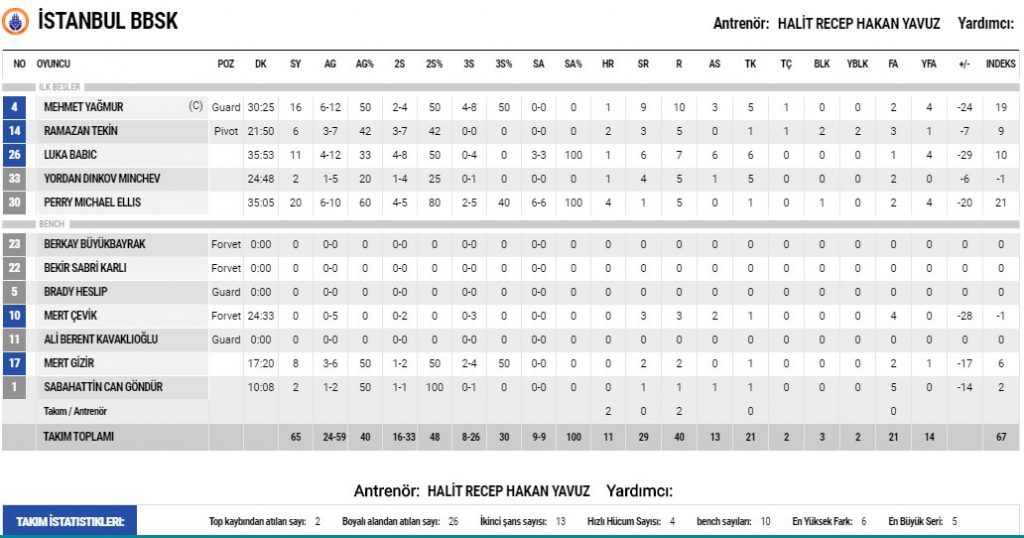 İBB’de Perry Ellis 20, Mehmet Yağmur 16, Babic 11 sayıyla oynayarak yalnızca farkı azaltabildi.