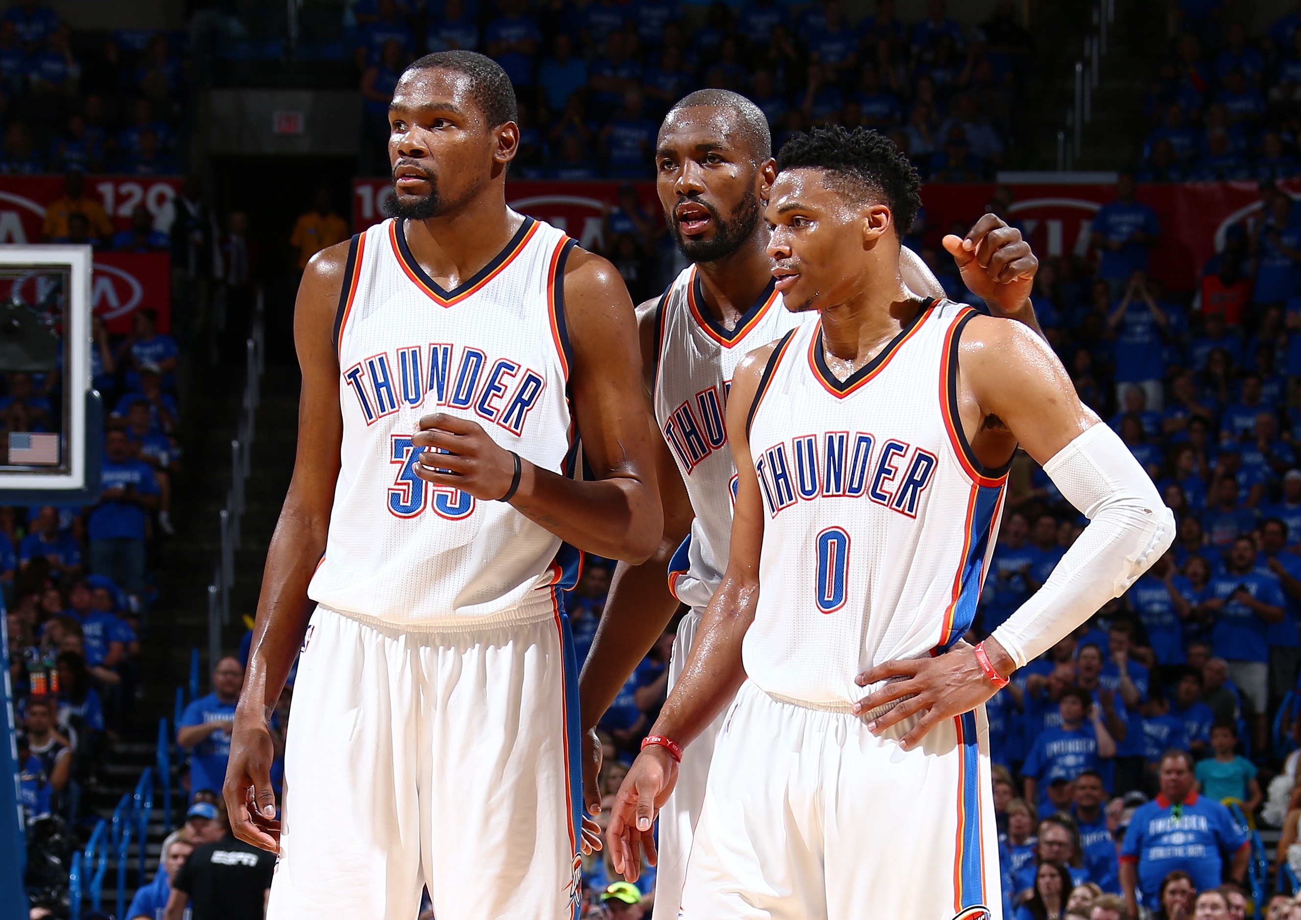 Durant, Westbrook ve Ibaka ise yedi yıllık bir süre boyunca altı kez play-off’larda mücadele etti ve her sezon şampiyonluk adaylarının arasında yer alan sıradaki NBA hanedanlığı olarak görülüyorlardı. 2012 yılında NBA finaline ulaşan Thunder, eşi benzeri görülmemiş bir genç çekirdeğe sahipti. O dönemde Durant ve Westbrook 23, Ibaka ise sadece 22 yaşındaydı. Final serisinde LeBron James, Dwyane Wade ve Chris Bosh üçlüsüne mağlup olan Thunder için gelecek parlak gözüküyordu.
